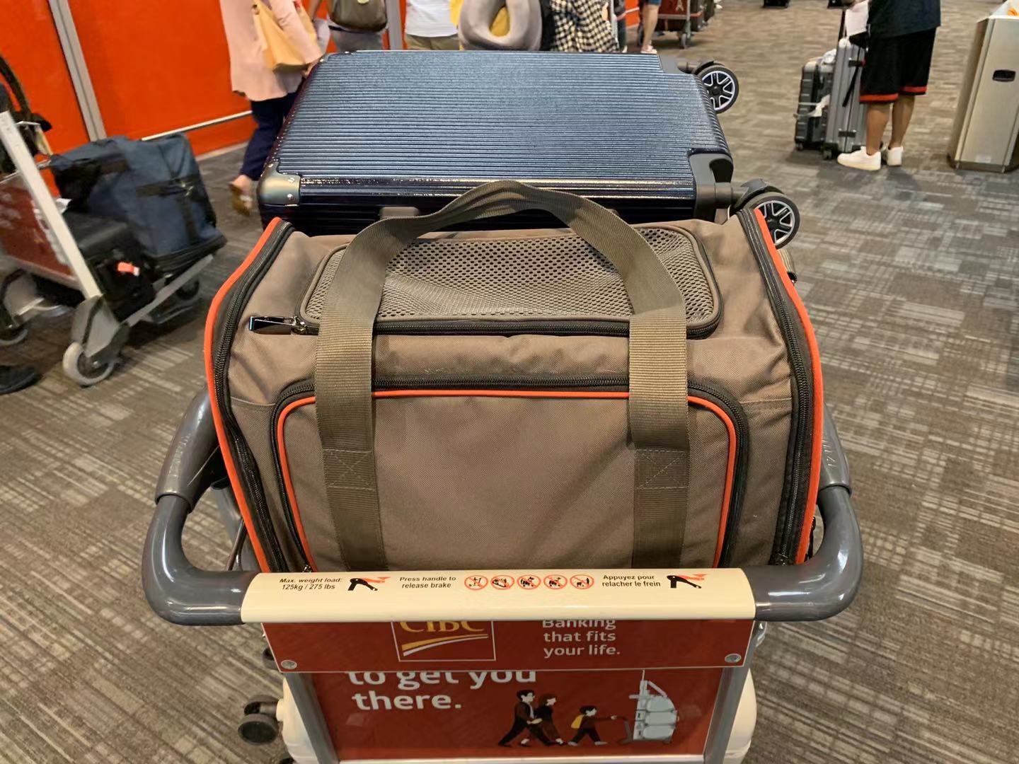 落地皮尔逊机场后,通关时候签证官也没有过问,在拿到行李后走申报通道,把《动物卫生证书》交给工作人员,然后缴费($35)即可,期间工作人员打开笼子看了一眼耶加,并没有扫描芯片,但是有询问有没有携带猫粮。办完手续后,耶加就这样顺利来到枫叶国。