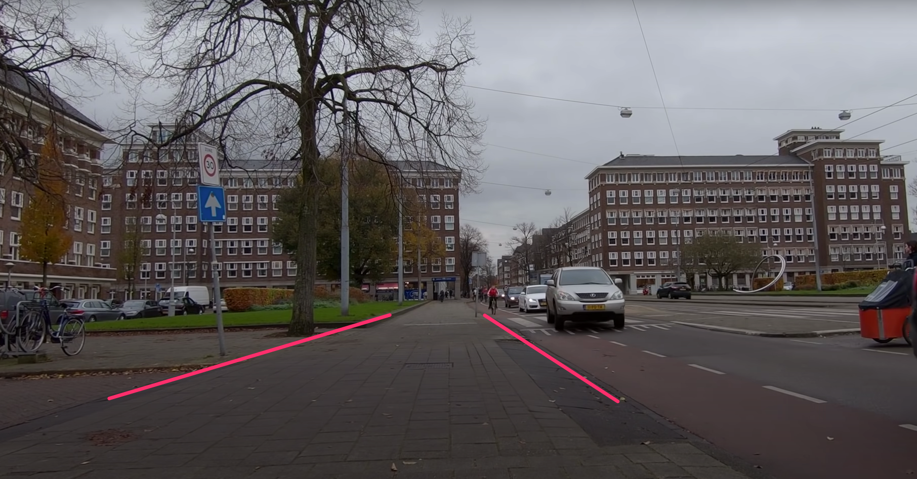 从行人的角度来看,荷兰设计的人行道是延续的,这意味着它跟马路牙子是平齐的。这样做的好处是: